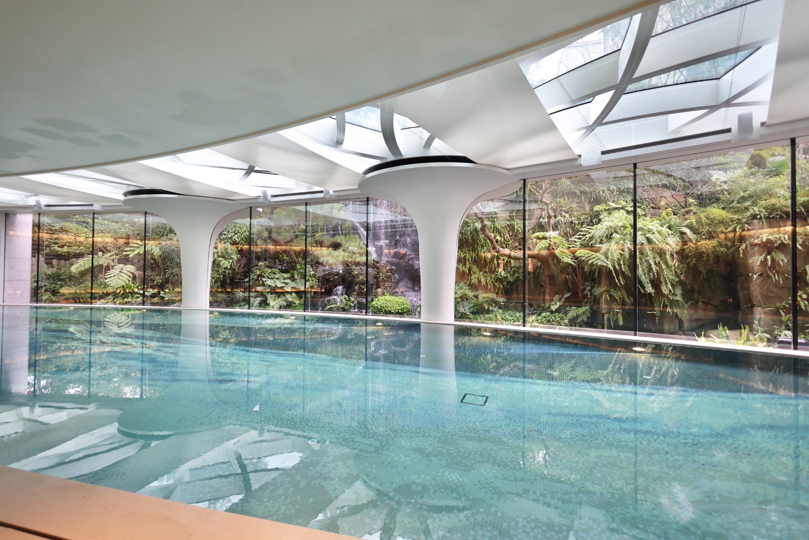 陶朱隱園地下一樓打造大型游泳池,戶外還有10公尺長的芬多精瀑布。李政龍攝