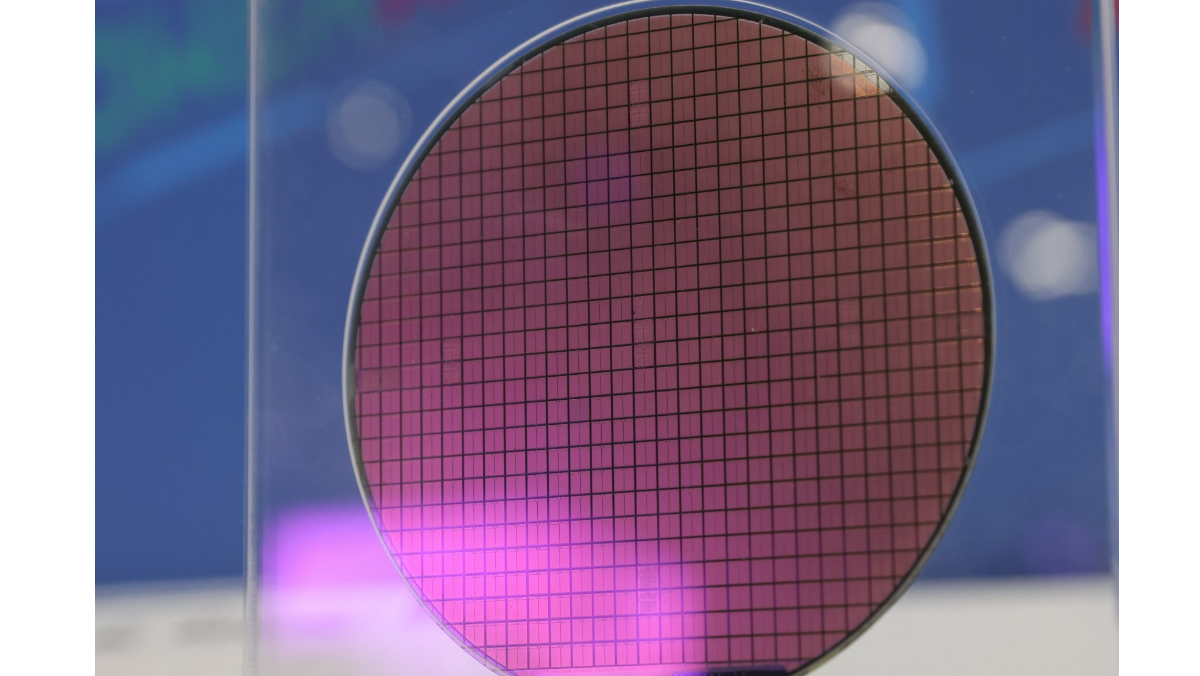 鴻海科技日現場攤位展出晶圓。李政龍攝
