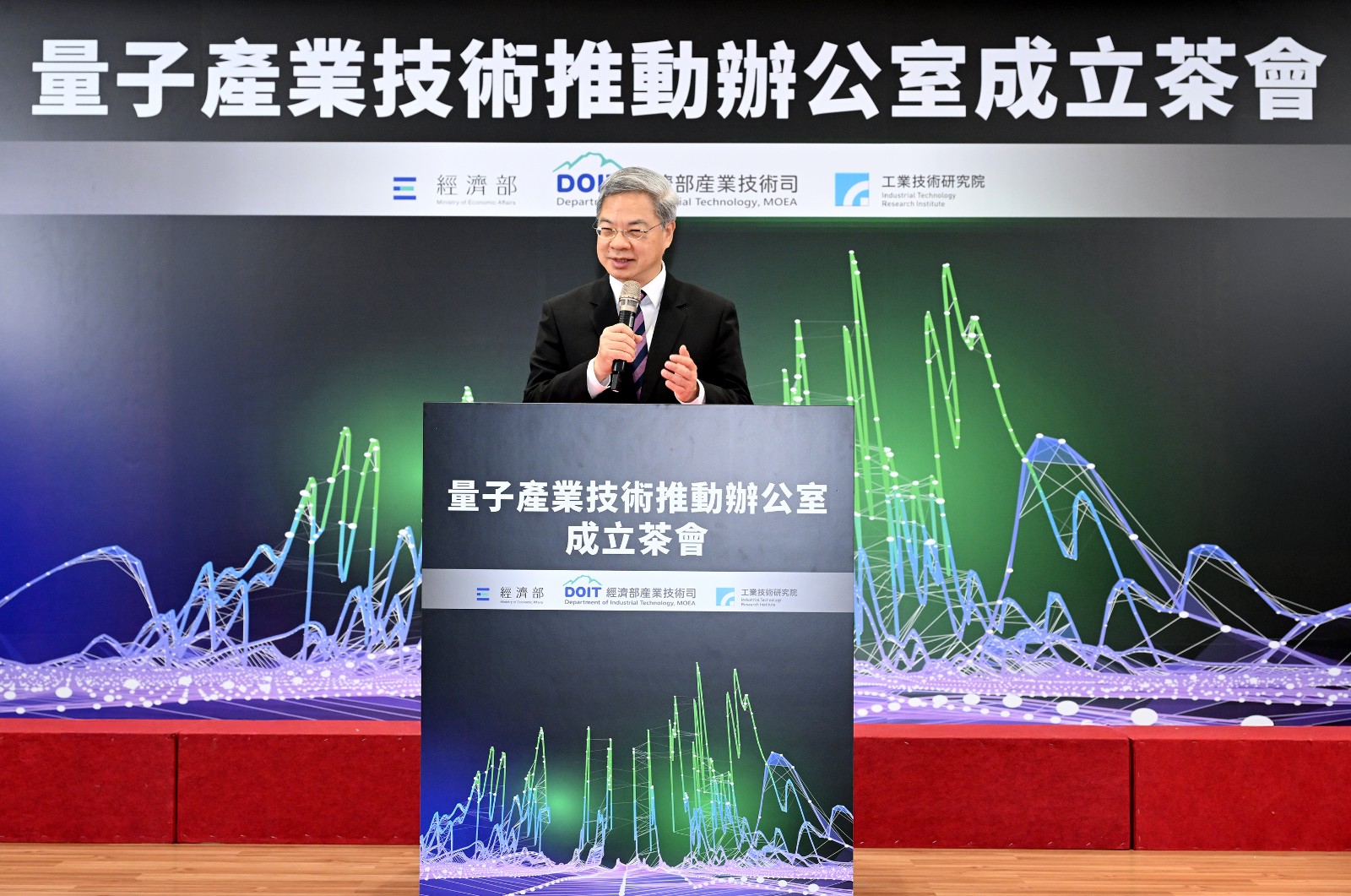 經濟部長龔明鑫在「量子產業技術推動辦公室」成立記者會致詞。工研院提供