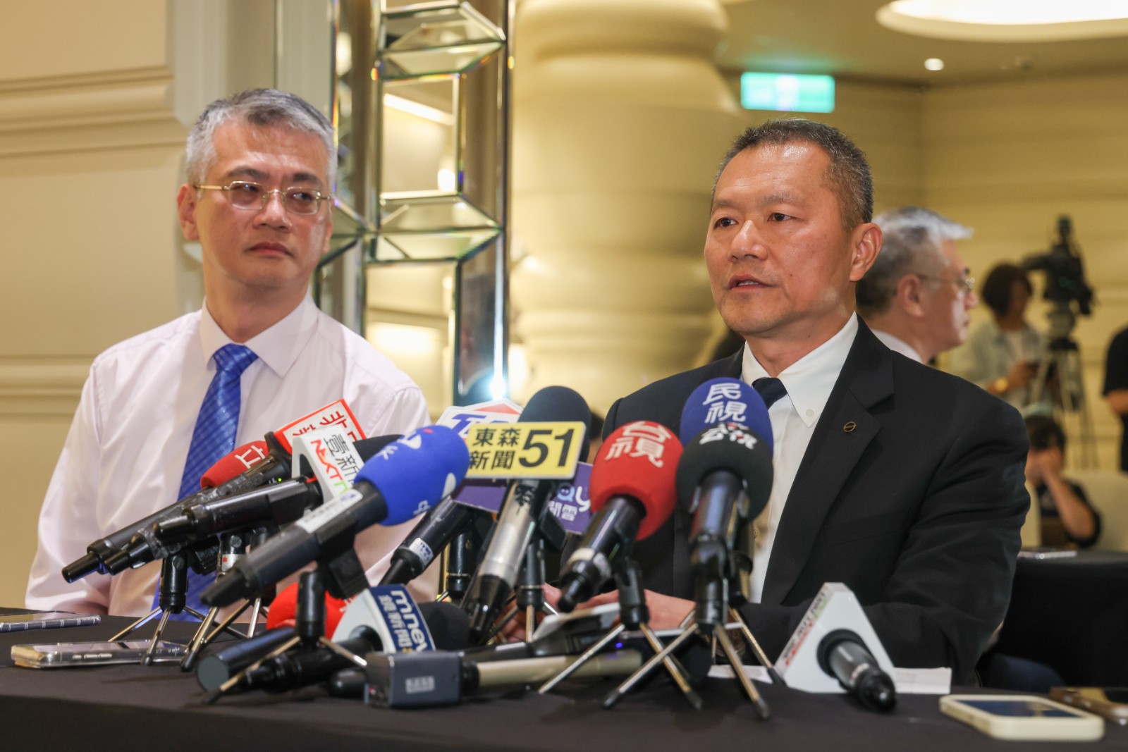 微風記者會,微風集團副總經理高銘頂(右)、律師劉健右(左)。廖瑞祥攝
