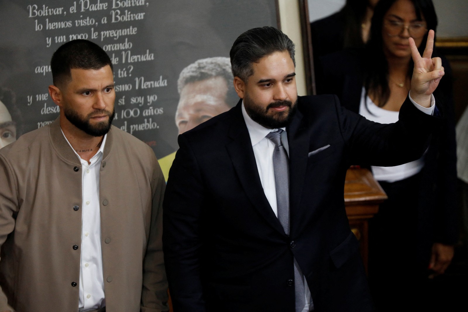 2026年1月5日,委內瑞拉總統馬杜洛的獨生子蓋拉就職國會議員,並向群眾發表演說。路透社