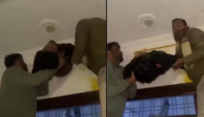 印度笨賊闖空門時卡在廚房排氣扇孔裡,還得靠警方幫他「拔出來」。翻攝X平台