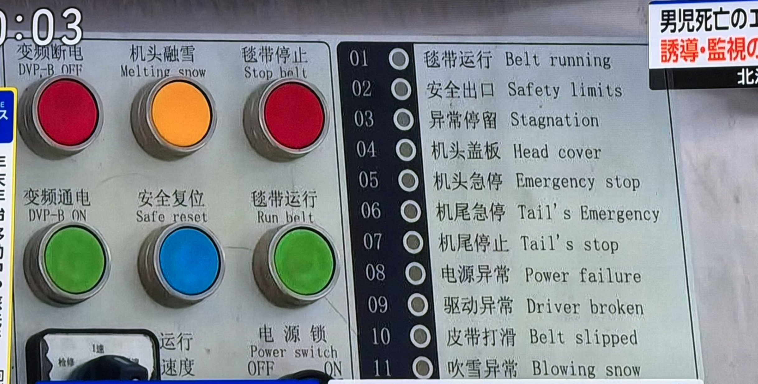 北海道小樽朝里川溫泉滑雪場夾死5歲幼童的中國製「魔毯」電動步道,操作板全部是簡體中文,完全沒有日文。翻攝X