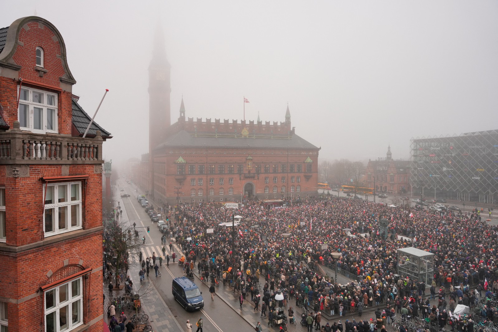 路透社報導,丹麥各地示威有數萬人參加,群眾聲援格陵蘭,並要求美國尊重格陵蘭人的自決權。
