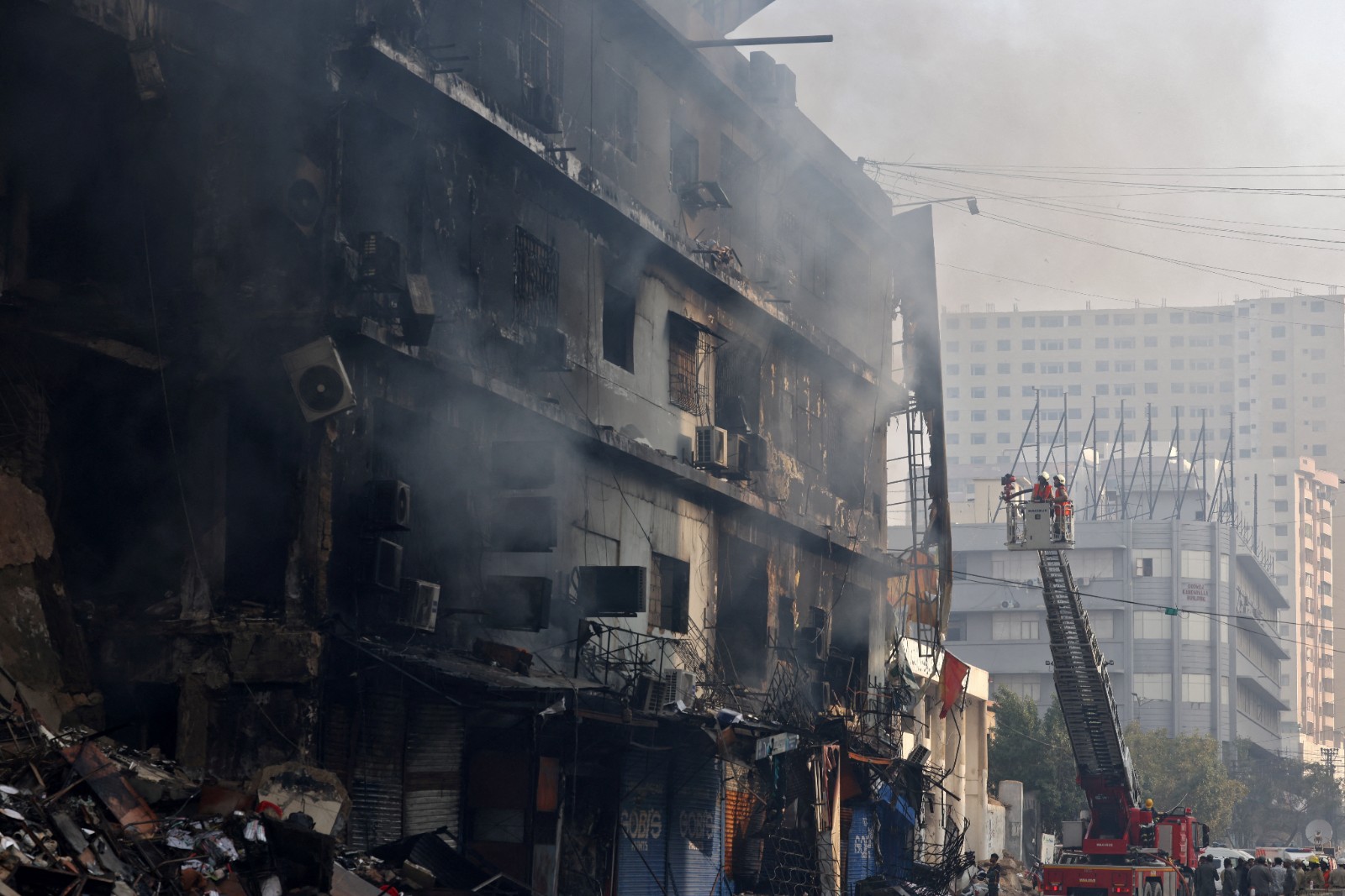 巴基斯坦消防人員週一(19日)開始在喀拉蚩(Karachi)一座大型購物中心仍冒著煙的殘骸中展開搜救,目前仍有60 多人失蹤。這場發生在週六(17日)晚間的大火,已造成至少14 人死亡。