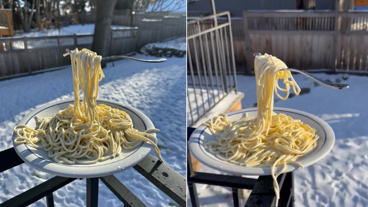 明尼蘇達州明尼亞波里斯(Minneapolis)氣象主播麥克德梅德(Jennifer McDermed)在X分享影片,在-29度的戶外環境裡,捲起義大利麵的叉子與麵條,就這麼定格懸在空中,宛如櫥窗展示的食物模型,吸引940萬次點閱。許多民眾跟著測試,一名密西根州女性說,20分鐘就凍結成型。