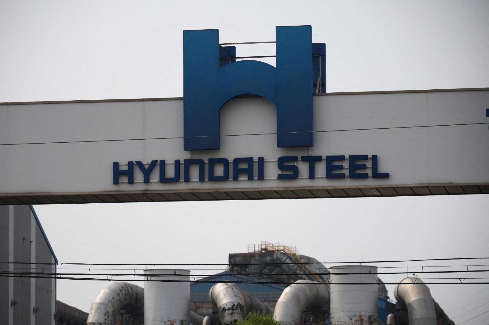 圖為2025年4月16日,南韓仁川工廠拍攝的現代鋼鐵標誌。路透社資料照