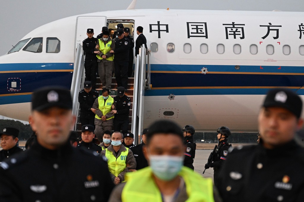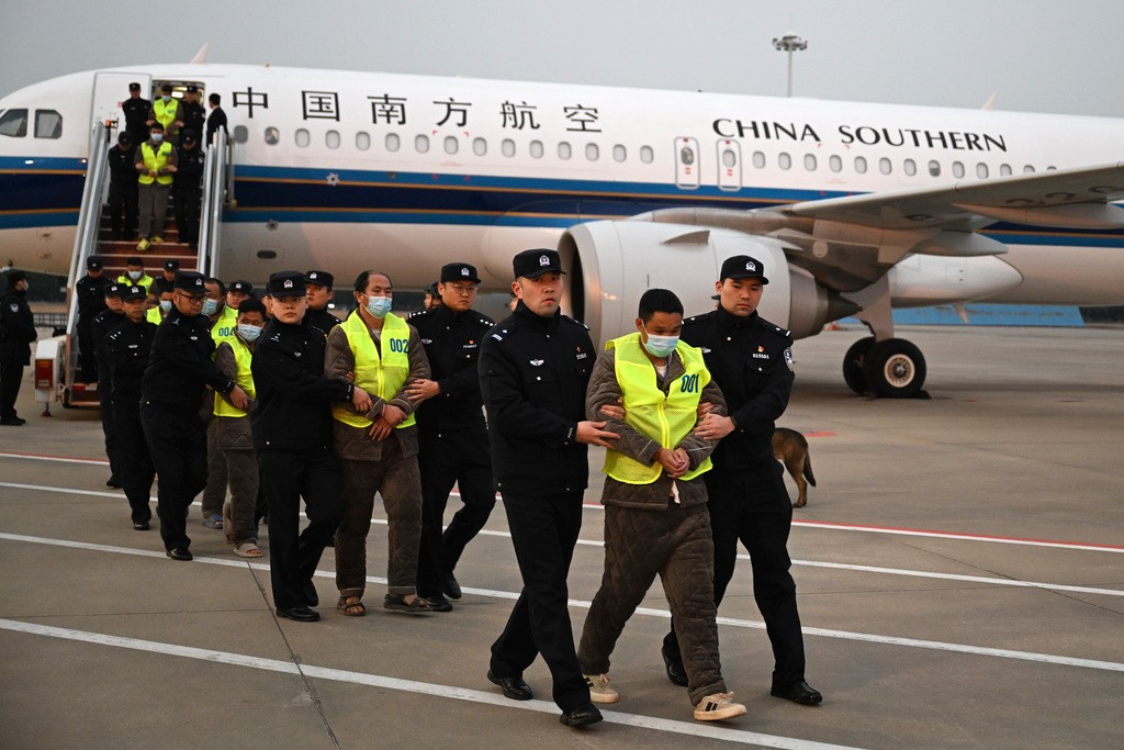 2025年2月20日,200名在緬甸妙瓦底被捕的中國籍詐騙嫌犯,被送往泰國後遭中國警方押回南京。美聯社