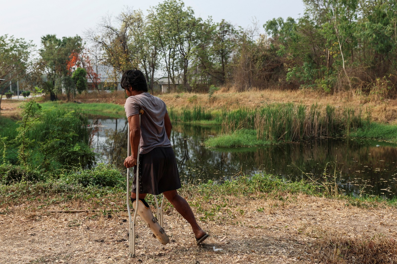 2025年2月19日,一名在自緬甸獲救、已然傷殘的詐騙集團受害者。路透社
