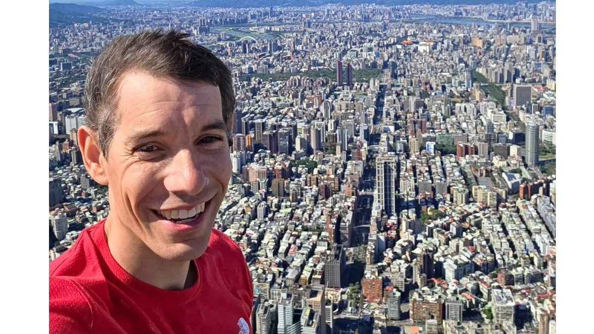 霍諾德在台北101登頂後自拍。取自霍諾德臉書