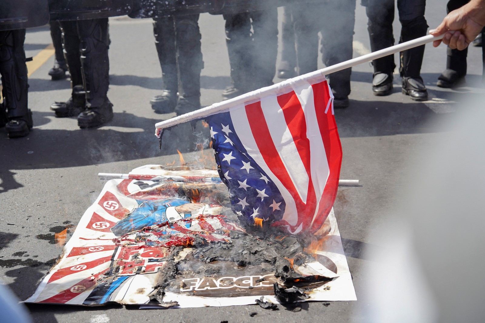2025年2月2日,美國國務卿盧比歐訪巴拿馬期間,民眾抗議美國對巴拿馬運河的聲索,有人焚燒美國國旗和川普畫像。路透社