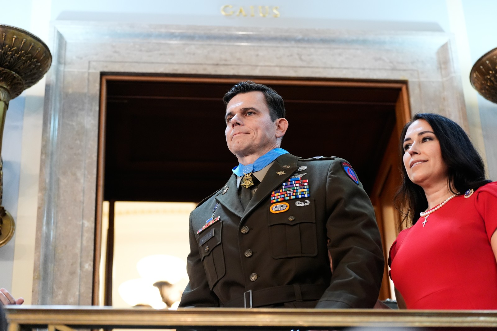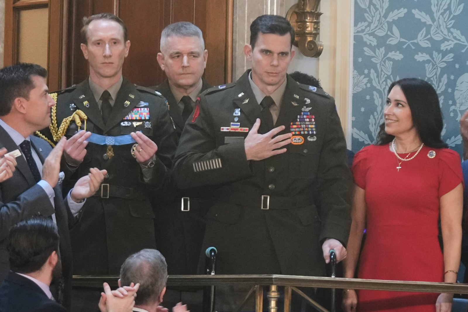 軍方當時未公布斯洛弗身分,僅稱他傷勢嚴重,正在佛州醫院接受治療。歷經近2個月休養,斯洛弗24日穿著禮服軍裝、拄著助行器現身,與妻子一進場,全場就起立鼓掌,大呼「USA!USA!」。之後由聯合特種作戰司令部司令布拉加(Jonathan Braga)中將,在觀禮席上為斯洛弗戴上「榮譽勳章」,現場再度響起如雷掌聲。川普說,白宮將為他另辦表彰儀式。