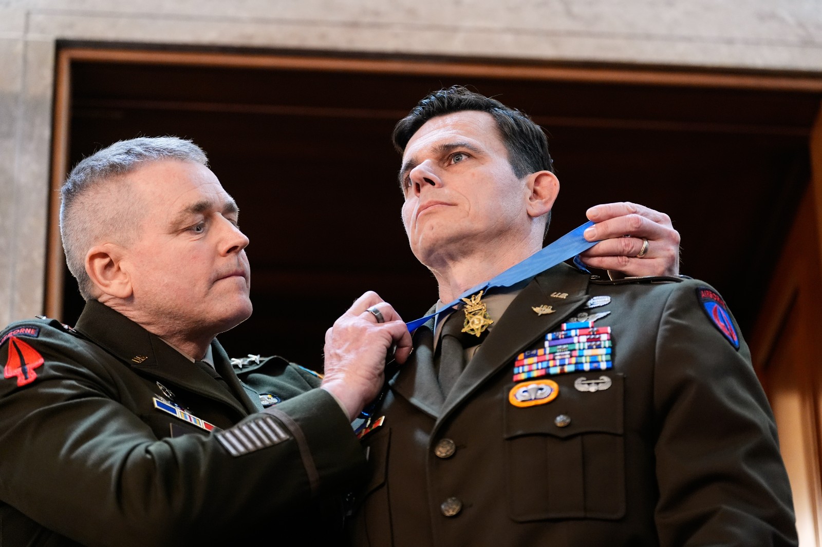 「子彈一顆接著一顆襲來」,川普說,斯洛弗承受4次劇烈衝擊,腿部被打成了碎片,臀部也中彈。儘管鮮血直流,他仍奮力控制直升機,甚至調轉方向,讓機上砲手們做出反擊,直到能夠安全降落後,才將操控權交給同樣受傷的副駕駛。
