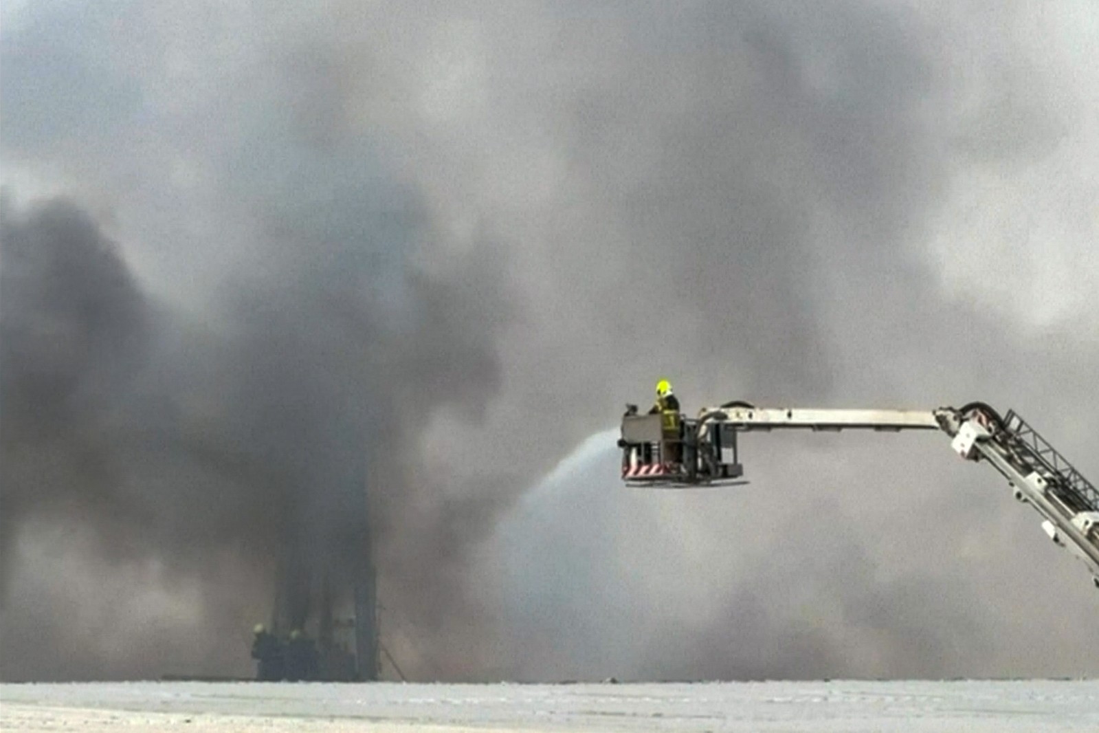 2026年3月16日,一架無人機撞上杜拜國際機場附近的一個儲油槽,引發火災並冒出滾滾濃煙,導致機場航班暫停起降。美聯社