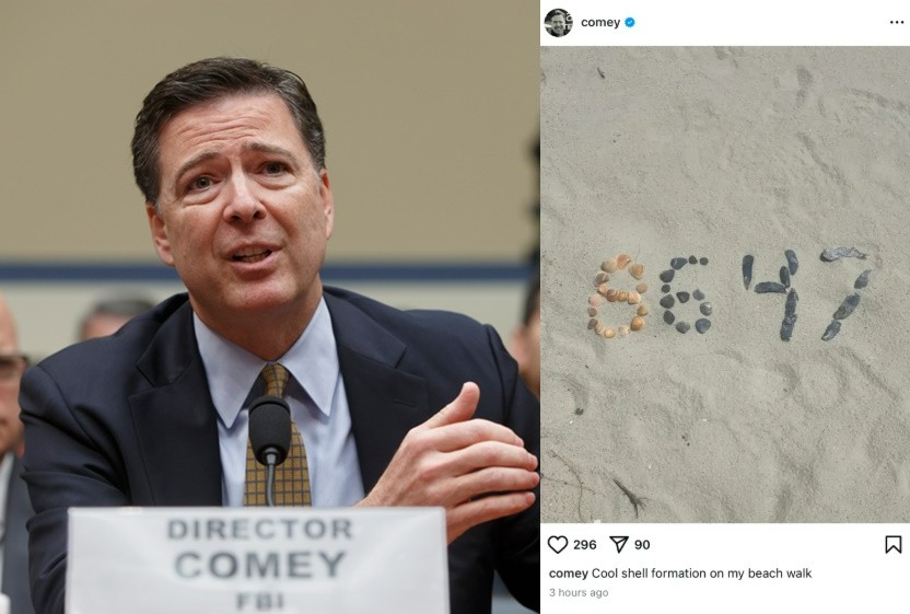 柯米去年5月在社群媒體上傳一張照片,說是在沙灘散步時看到地面上有人用貝殼排列出「8647」數字。柯米上傳「8647」照片後,立刻有川粉痛批他在鼓勵暗殺川普。