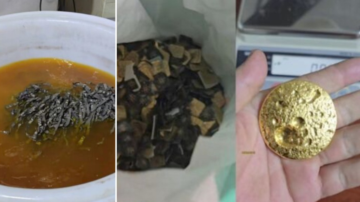 中國一名男子收集2噸晶片鍍金廢棄物,提煉出191克黃金,掀起討論。翻攝微博