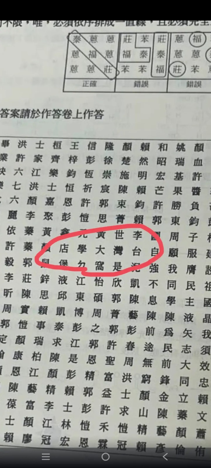 雄中考卷,學生圈出台灣大學店。取自Threads