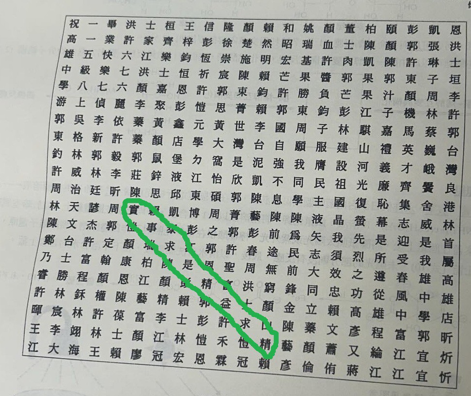 這題共有400個字,藏12位老師名字,要學生連連看,考驗洞察力,考生受訪表示,「這題可以拿一些額外的分數,我圈了三個老師的名字。」