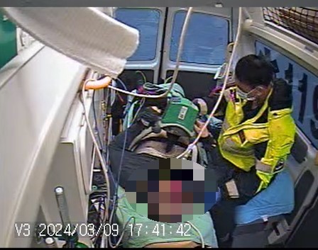 台中市消防局EMS「緊急醫療服務」(Emergency Medical Services)獲報火速趕抵現場,,沒有猶豫,立刻跪在市場冰冷的地面上展開CPR,一次又一次有力的胸部按壓,在汗水、時間與人群的注視中,為患者爭取每一秒生機。救護車啟程後,CPR從未中斷,聲門上呼吸道迅速建立,AED 一次、兩次……直到第8次電擊。