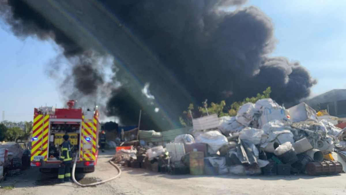 高市大寮區一處資收場今(1/27)發生火警,大量廢塑膠及廢輪胎燃燒,黑色濃煙直竄天際,10多公里外清晰可見,造成高屏地區空氣污染警戒。環保局派員稽查發現,業者未領有回收業登記證書,並非法堆置大量廢塑膠回收物引發火警,已違反《空污法》,依法最高可罰500萬。