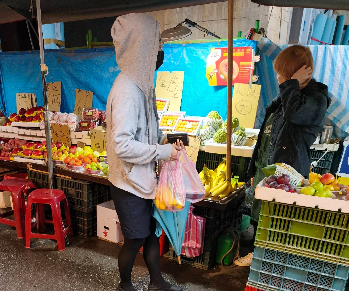 市場攤商是購物用塑膠袋使用最多的行業之一,但在塑膠袋價格提升後,攤商也不再像過去一樣無限制的供應顧客使用。洪敏隆攝