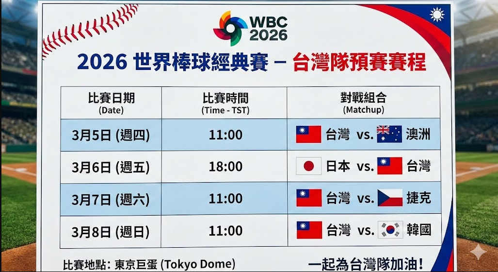 2026經典賽台灣隊預賽賽程。Gemini製圖
