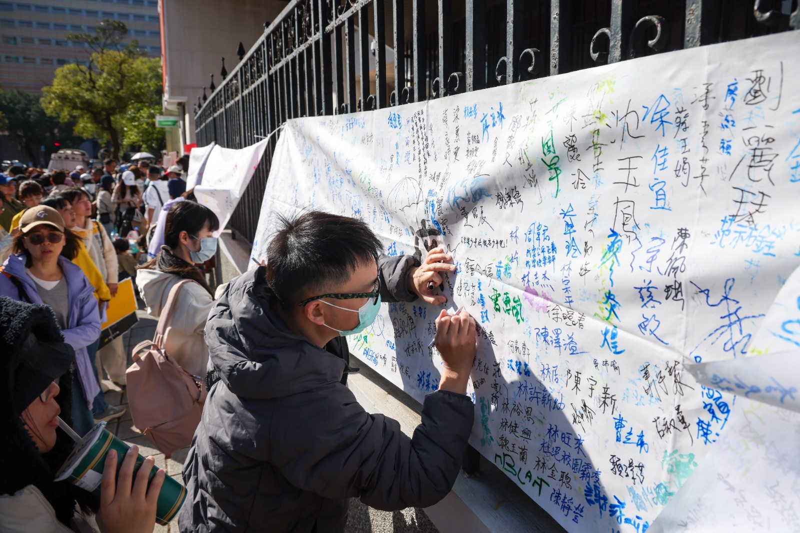 「我真的很感激他們!」楊爸一到現場,群眾們「加油」聲不斷,還有好幾名家長上前擁抱安慰。楊爸表示,法官的判決對加害者顧及情理法,對受害者不能共情共理只談法,讓人情何以堪?加害者明明前科累累,郭姓學生涉犯霸凌、性侵、吸毒等案件,卻因塗銷制度,最終判決寫著其身上無刑事案件。