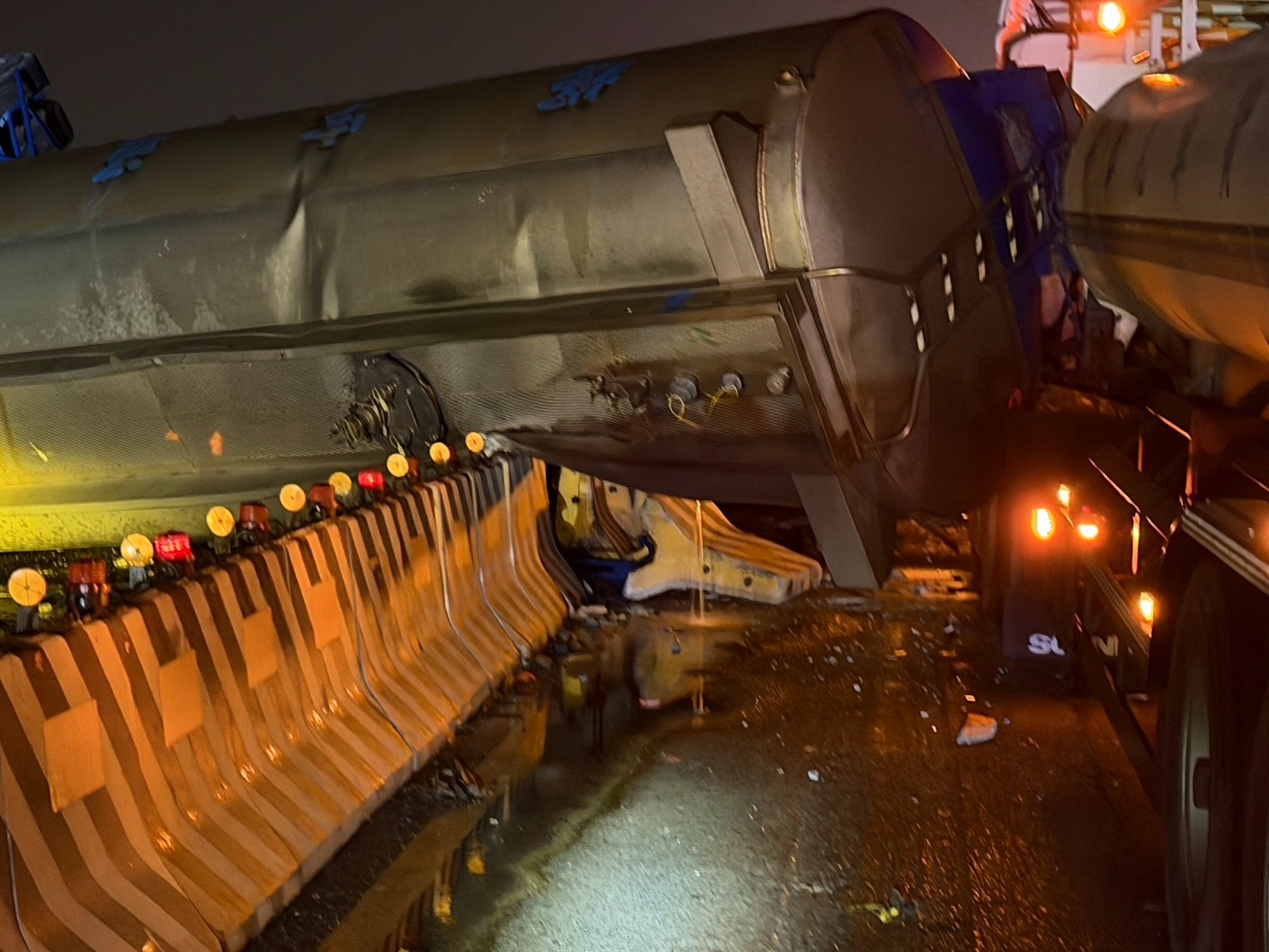 17日凌晨2時31分,台中市消防局受理西濱快速道路161.9公里車禍搶救案,現場一輛槽車翻覆躺在對向車道,乙酸甲酯洩漏灑地路面,造成2輛槽車、1輛聯結車及2輛小貨車連續撞擊,三人受傷送醫,包含駕駛槽車男駕駛(約57歲)、小貨車駕駛(約56歲)、小貨車乘客(約37歲)。