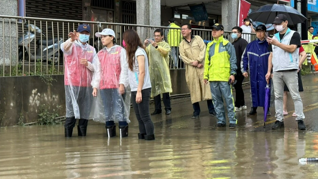 新竹市長高虹安視察淹水災情。新竹市政府提供
