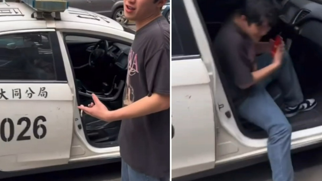 屁孩趁警車上沒人,直接坐進副駕駛座。記者爆料網