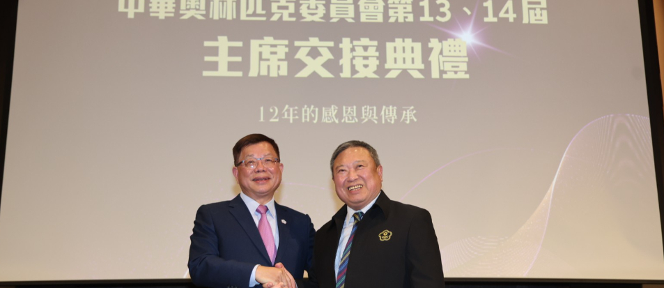 中華奧林匹克委員會第13、14屆主席交接典禮,今(30日)在台北新板希爾頓酒店隆重舉行。帶領中華奧會走過十二年任務與榮耀的主席林鴻道,正式卸下重任,在榮譽主席蔡辰威擔任監交下,將象徵責任與使命的印信,交付給新任主席蔡家福。此次交接不僅是職務更替,更象徵臺灣體育傳承重要時刻。