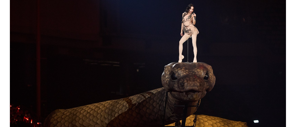 蔡依林(Jolin)今晚(12╱30)起一連3天在台北大巨蛋舉辦「PLEASURE」演唱會,除了一開場的「慶典公牛」,擔任愉悅之母的她還坐騎30公尺長的「慾望巨蟒」繞場高唱〈美杜莎〉。