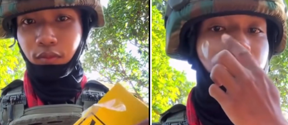 泰國與柬埔寨邊境衝突持續緊張,近日一段強烈反差的影片在網路上暴紅。一名柬埔寨士兵在鏡頭前擦防曬乳,背景陣陣槍聲彷彿與他無關,被網友戲稱為「直播帶貨」,令人莞爾。