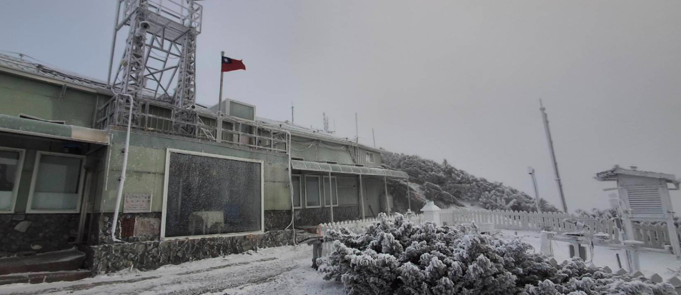 氣象署觀測,玉山氣象站昨清晨開始降雪,持續至昨下午,而今(1/10)清晨6時26分氣溫是零下5.6度,天氣放晴,氣象署在臉書分享一組照片,可見藍天下的玉山覆蓋白雪,景色絕美。