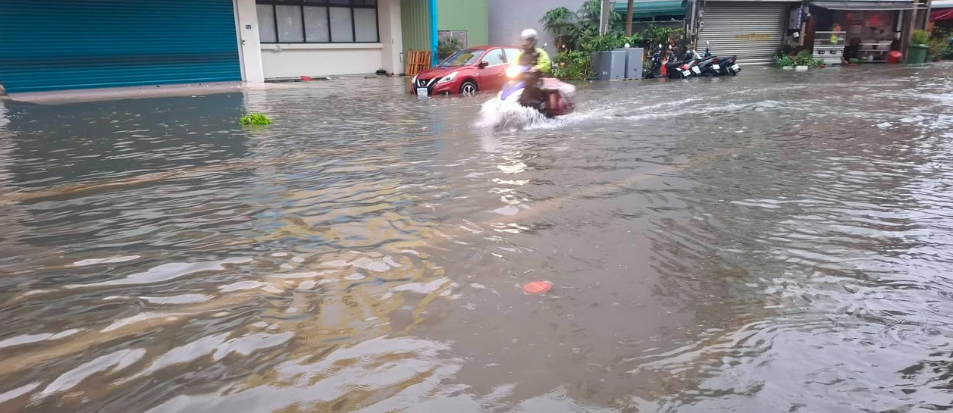 4日劇烈降雨,苗栗縣達大豪雨等級。氣象粉專「進擊の天氣小編」表示,雷雨胞「一劍貫穿」苗栗,提醒今天「整天」都是鋒面影響,除了北北基桃以外,其餘地區雨勢都將明顯;致災性雨彈轟炸,全台累積雨量前30名由苗栗全數包,多處淹水、道路阻斷,《太報》透過照片表達災民無奈心聲。