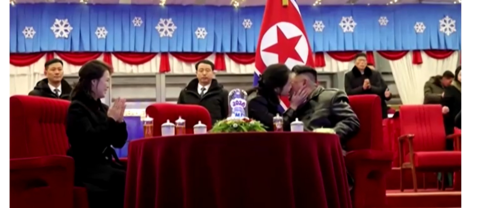 北韓領導人金正恩帶著妻女參加北韓官方週三(12/31)晚間舉行的大型跨年表演活動。活動上最搶戲的一幕就是金正恩父女之間的「溫馨一吻」。此外,表演活動上還出現以往罕見的「男團」演出。