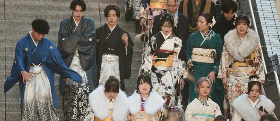 據日本媒體今天(1/12)報導,今天是日本的「成人之日」(成人の日),各地舉行慶祝儀式,為身穿華麗和服的年輕人們,紀念20歲的瞬間,在京都的展覽會場,有藝妓在台上翩翩起舞,而在東京迪士尼樂園,經典卡通角色米奇、米妮,則化身「回憶殺」,博得熱烈喝采。