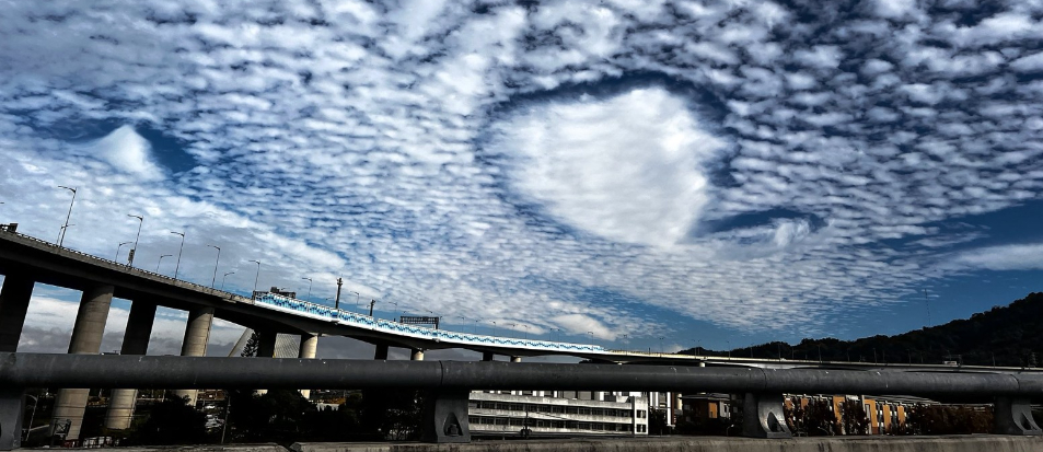 2025年歲末,台中市民卓志明拍攝到天空的雲,呈現一顆心,於臉書貼文表示:「」2025歲末天際演出,送來一顆心。」網友留言「精彩絕倫!未來的希望就是光明磊落、磊落光明」、「美!新年快樂」。