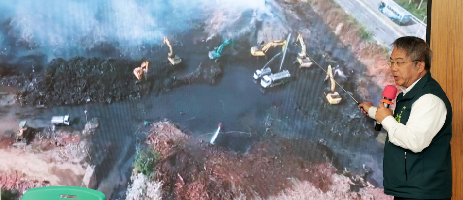 台南市後壁區烏樹林暫置場上月21日發生大火,火勢撲滅後持續悶燒,昨深夜11時30分才完全撲滅。台南市政府消防局及環保局今天(12/4)舉行記者會,說明處理過程及後續作業,並為火警帶來的影響向市民致歉。