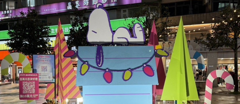 「2025繽紛耶誕玩台北」攜手了16大百貨體系共同營造超過80處璀璨燈飾,與多達40場精彩展演活動,讓整個台北市都瀰漫佳節氣氛,對此今年活動更是結合最受歡迎的Peanuts家族明星「史努比」,在各個百貨商場都設置了精美的耶誕布置,並且還有抽獎活動供遊客參與,週週亮點不斷。