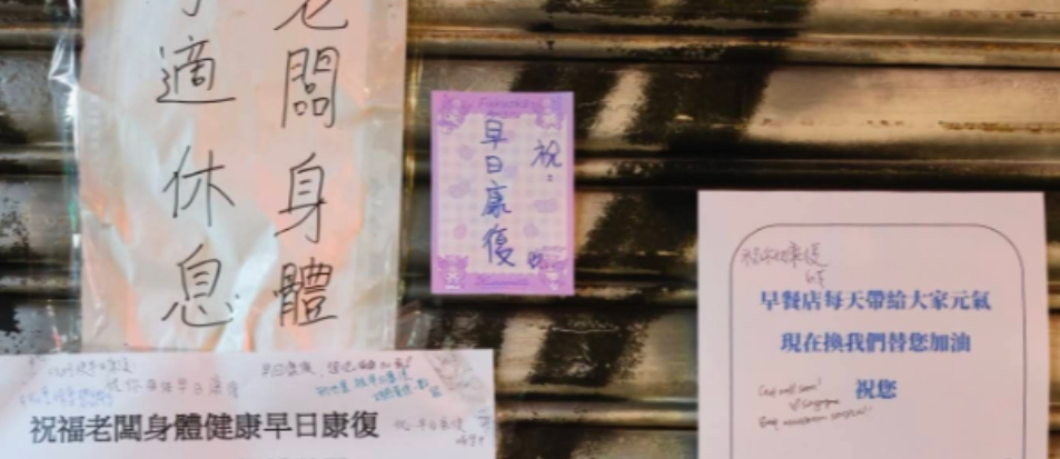 台灣人對於早餐店真的很有感情!就有一名網友表示,家附近的早餐店突然沒營業,原來是老闆身體不適暫時休息,但鐵門上卻被充滿「祝福留言」。短短一張照片,也引來上萬人按讚,更稱「這老闆這輩子值得了,有這麼多鐵粉看了會哭!」