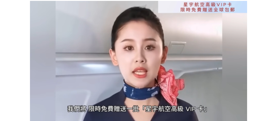 農曆春節將近,正值歲末年終消費、旅遊需求升溫之際,詐騙集團趁此時再出新招,利用AI人工智慧技術,偽造星宇航空董事長張國煒,以及華航、長榮航的空服人員與幹部等人的形象,散布「免費機票」、「免費送VIP卡」等誘人訊息,吸引民眾點擊一頁式詐騙網站,被引導加入詐騙LINE群組。被冒用身分的相關航空公司已緊急發布聲明澄清,並通報主管機關處理。