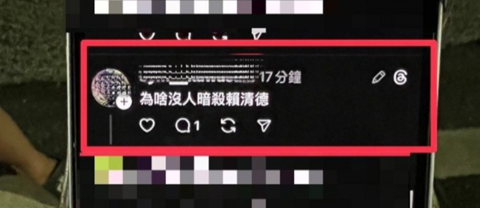 共軍圍台軍演,Threads平台卻有網友發表恐嚇言論,多次留言「暗殺賴清德」等內容,斬首令格外敏感,警方不敢大意!屏東縣警察局獲報後展開網路蒐證,今(31)日在高雄市將謝姓犯嫌(25歲)查緝到案,全案詢後依刑法恐嚇公眾罪嫌送請屏東地檢署偵辦。